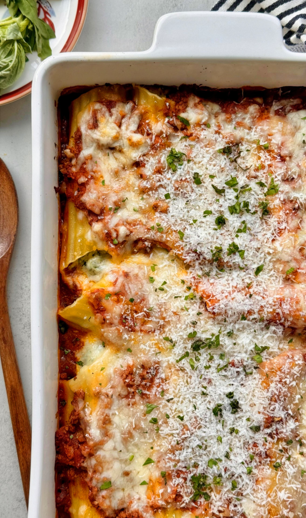 Now, making it myself brings back all those memories. The pasta shells are filled with a creamy ricotta, mozzarella, and spinach mixture, baked in a rich meat sauce, and topped with gooey, golden cheese. It’s hearty, comforting, and totally satisfying without being complicated.