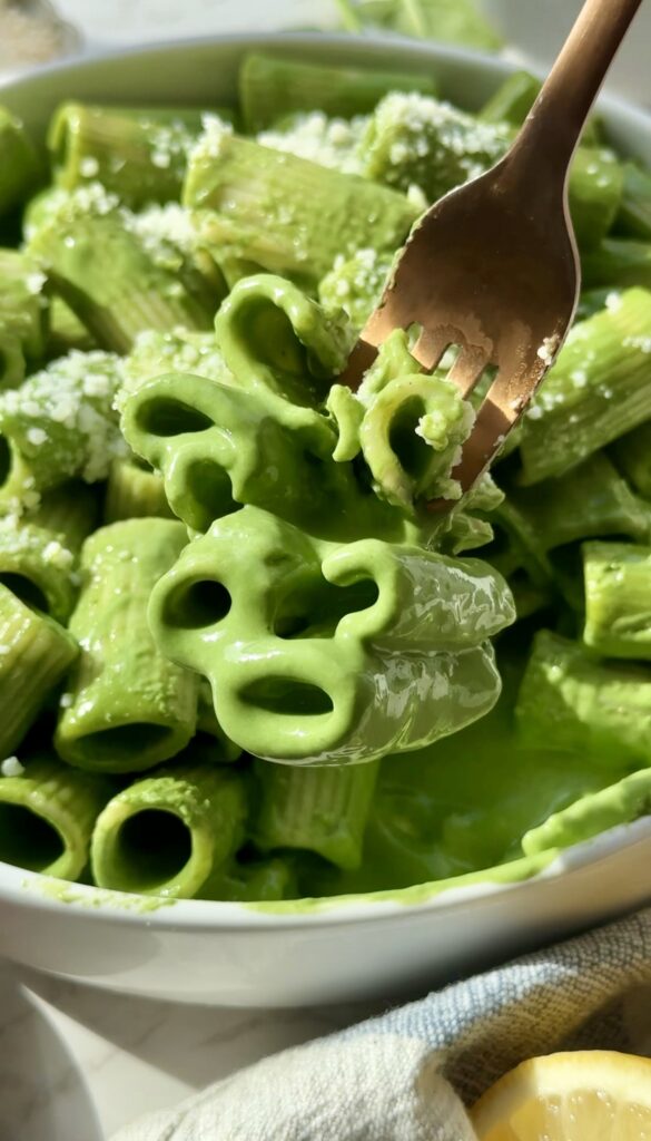 Another thing I love about this creamy spinach pasta is how simple the sauce is. Cottage cheese blends into the creamiest, velvety sauce without needing heavy cream, and it’s such an easy way to sneak in extra protein. Once it’s tossed with the warm pasta, garlic, and spinach, it becomes rich, cozy, and so satisfying while still feeling lighter than most traditional creamy pasta dishes.