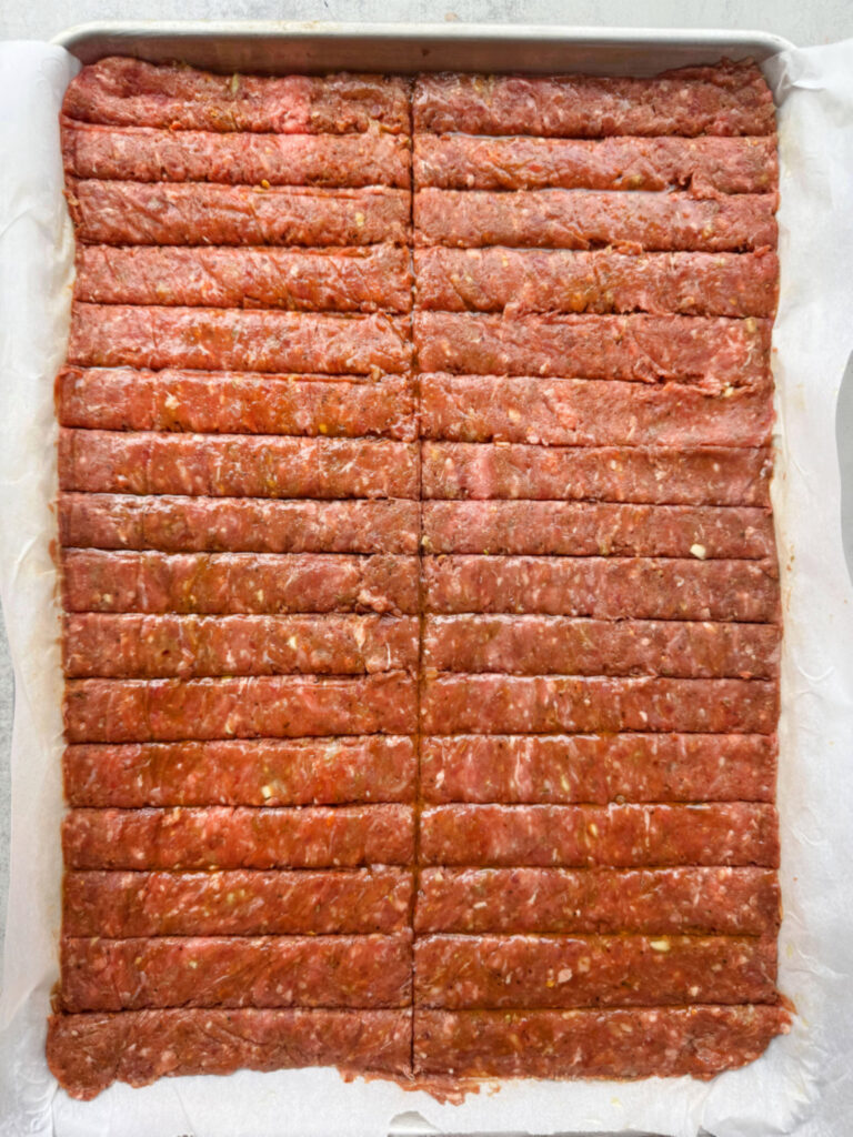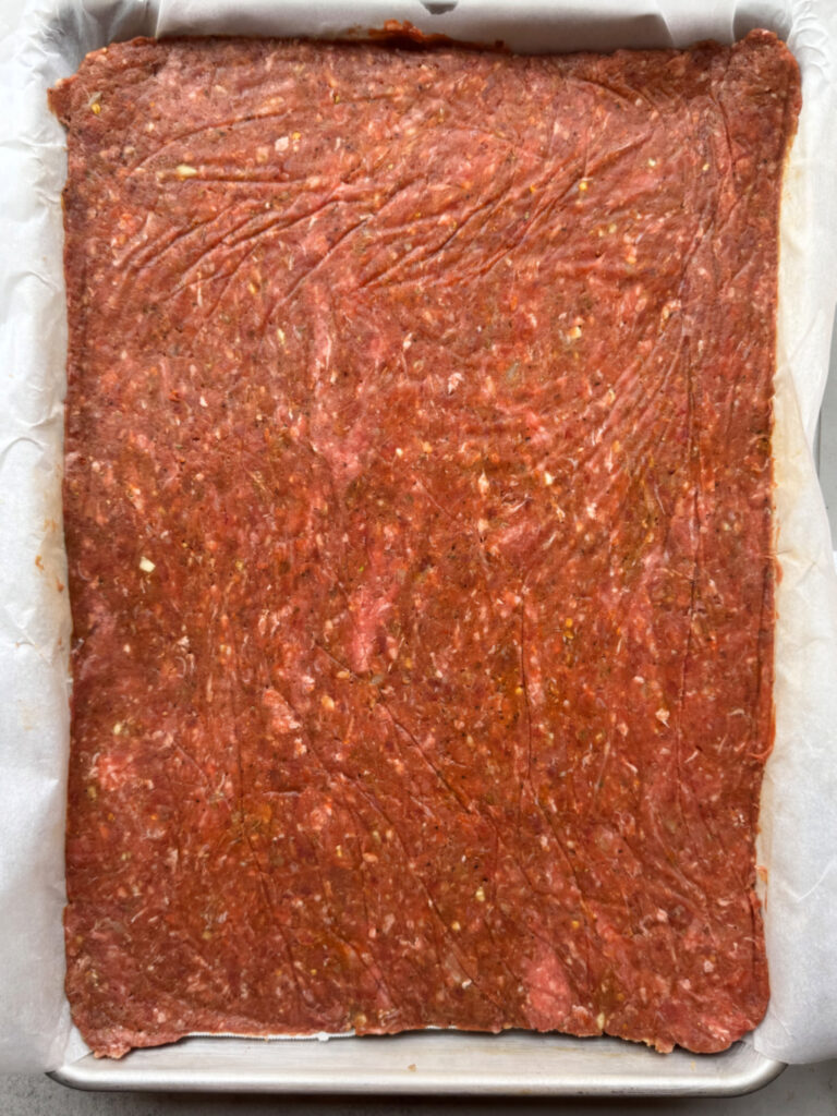 - Use the correct baking sheet size: If you plan to halve the recipe adjust size of baking sheet. Spreading the meat too thin will cause it to overcook.