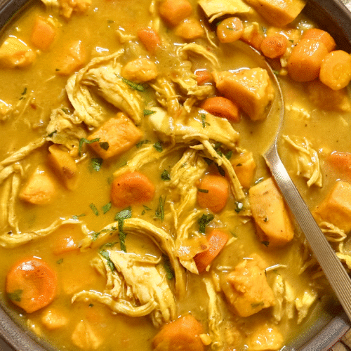 Some recipes are born out of pure necessity, and this Sweet Potato & Chicken Coconut Curry Soup is one of them. After a stretch of heavier eating, I was craving something cozy and nourishing — the kind of meal that feels like a reset without feeling like a “reset.” I wanted warmth, protein, anti-inflammatory ingredients, and something that actually tasted good enough to crave again the next day.